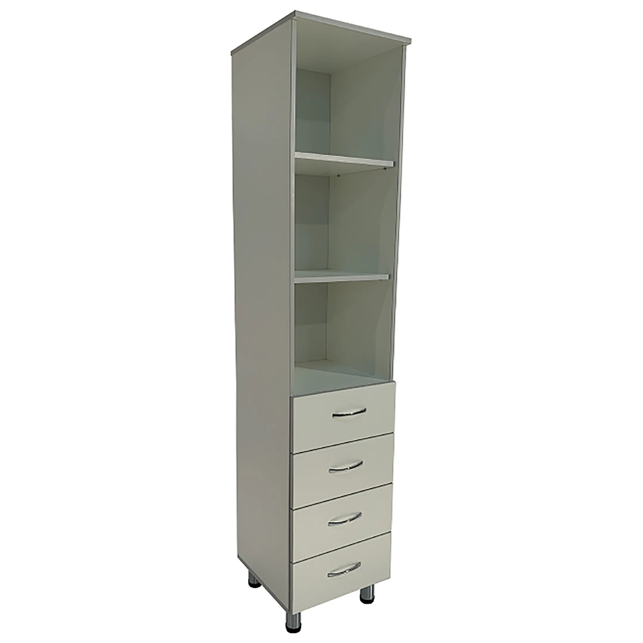 • Ниша шкафа разделена на отделения, что помогает эффективно организовать хранение и быстро находить необходимые материалы.