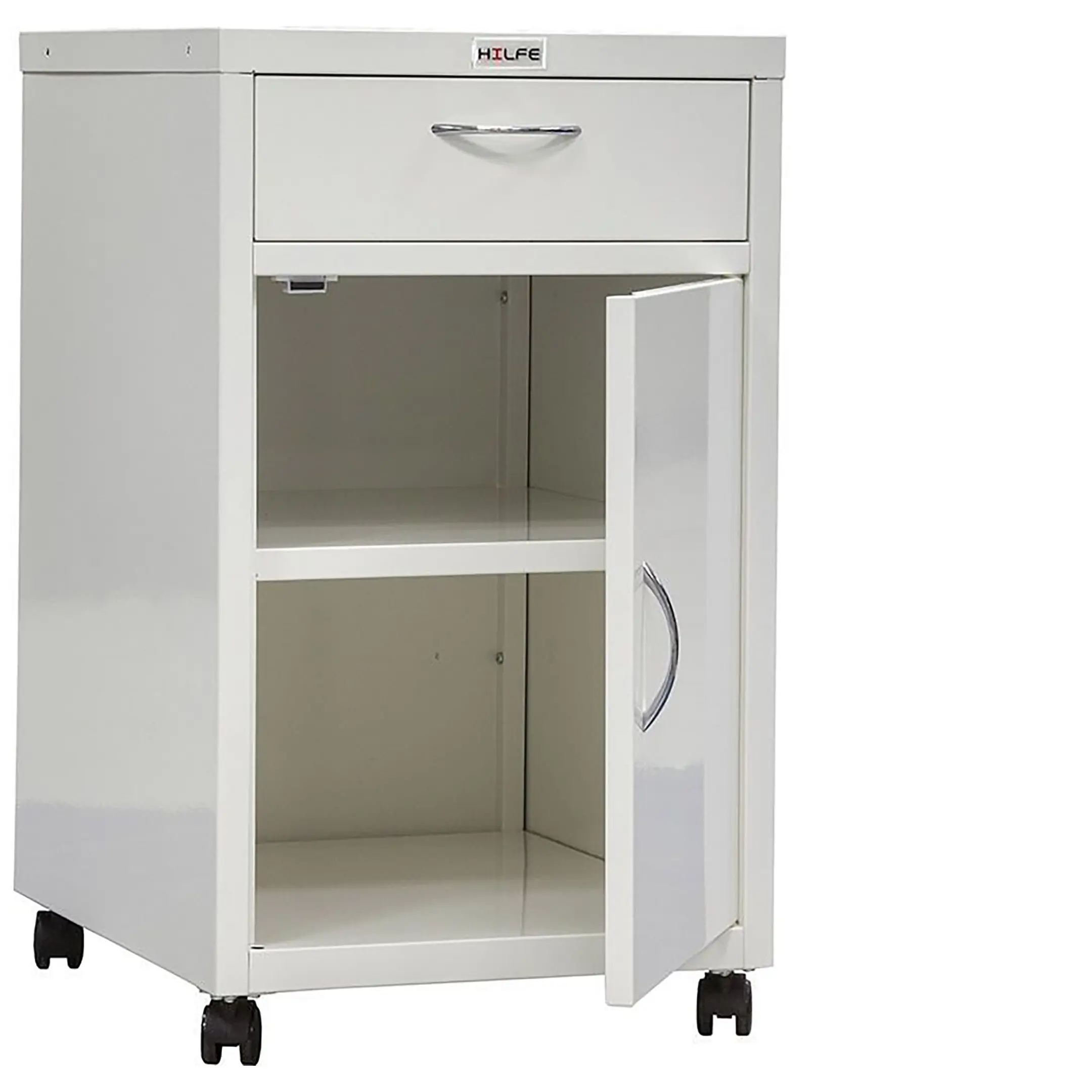 Опция: установка ключевого замка (2000 комбинаций), пластиковые опоры вместо колес, резиновые колеса. Окраска дверей, передних панелей ящиков или корпуса изделия полностью в другие цвета из палитры производителя - RAL 710-1, RAL 610-1 (при заказе от 70 штук).