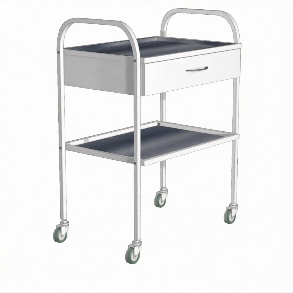 Стол инструментальный (колеса резина) с ящиком СИя-2н (каркас белый) применяется для размещения на нем инструмента, материалов, медикаментов, в том числе применяемых в стоматологической практике, в кабинетах врачей, перевязочных, операционных, на постах медицинских сестер в отделениях больниц, в клиниках, поликлиниках и других медицинских учреждениях.