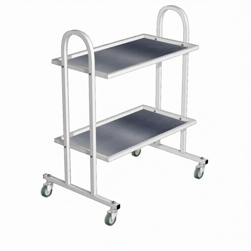 Стол инструментальный (колеса резина) СМ-2 (каркас белый) — это двухъярусный мобильный стол, применяемый для размещения инструмента, материалов и медикаментов, в том числе в стоматологической практике, в кабинетах врачей, перевязочных, операционных, на постах медицинских сестер в отделениях больниц, клиниках, поликлиниках и других медицинских учреждениях. Модель имеет две полки из нержавеющей стали.