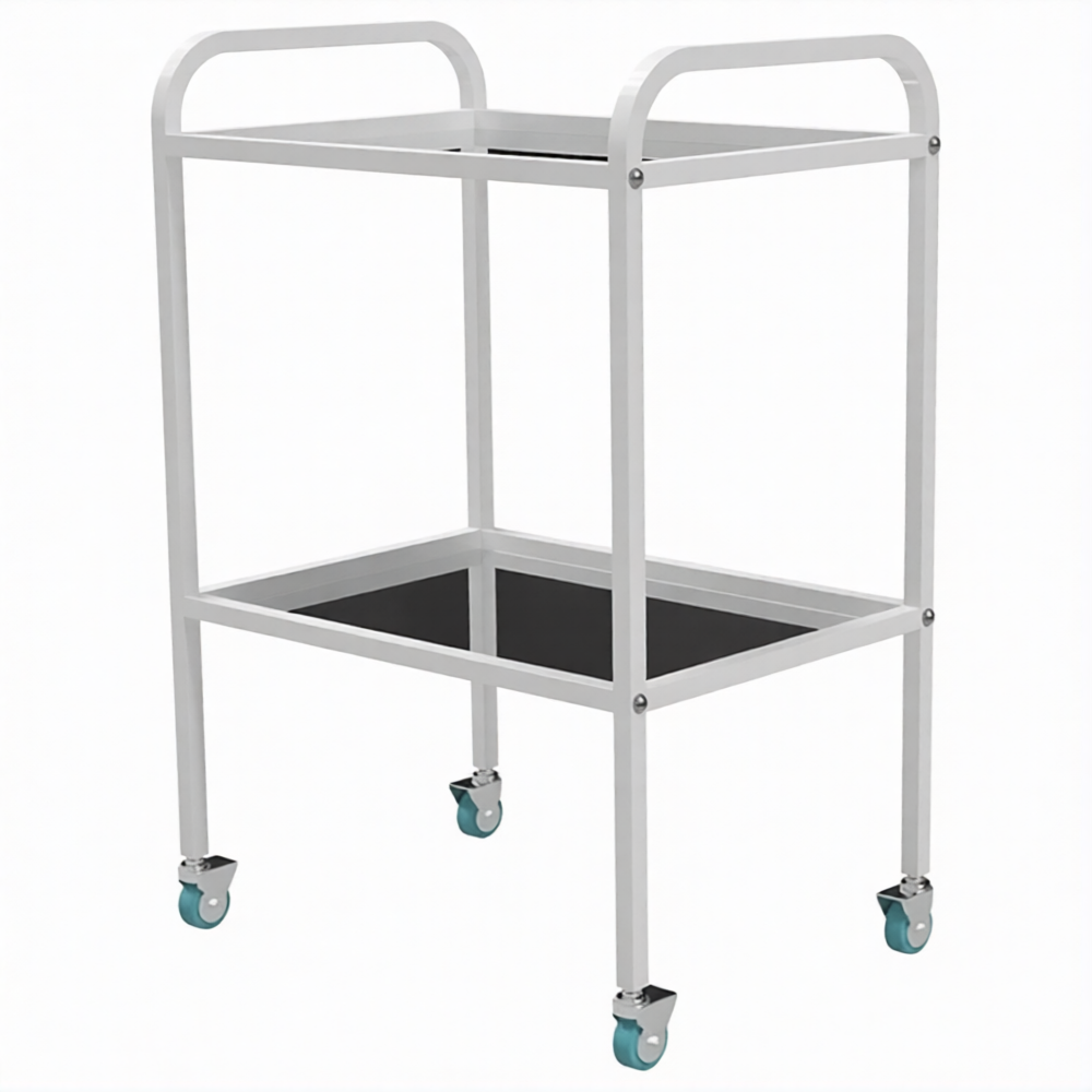 Стол медицинский инструментальный СМИ-02 (полки металл, колёса серая резина) предназначен для размещения инструмента, лекарственных препаратов и приборов.