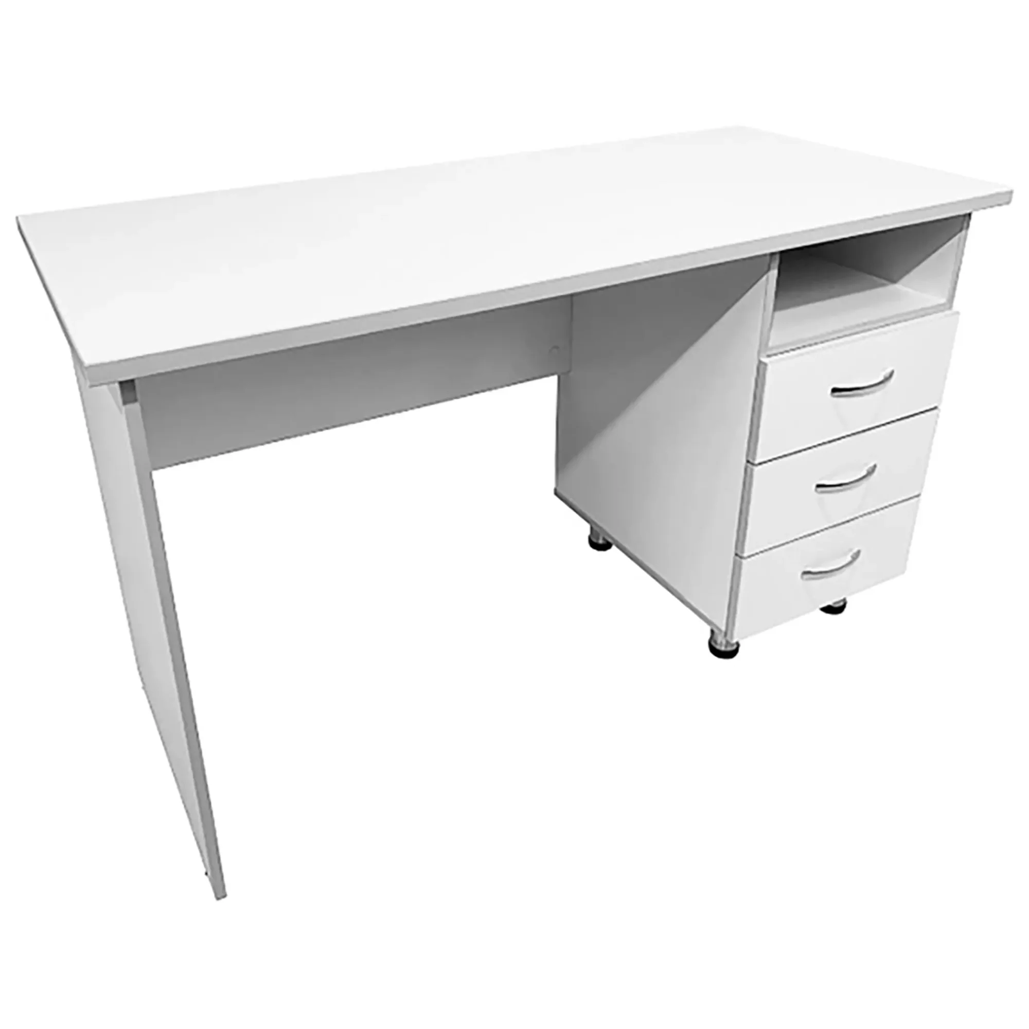 • Стол оснащен боковой тумбой, которая оборудована нишей и тремя выдвижными ящиками.