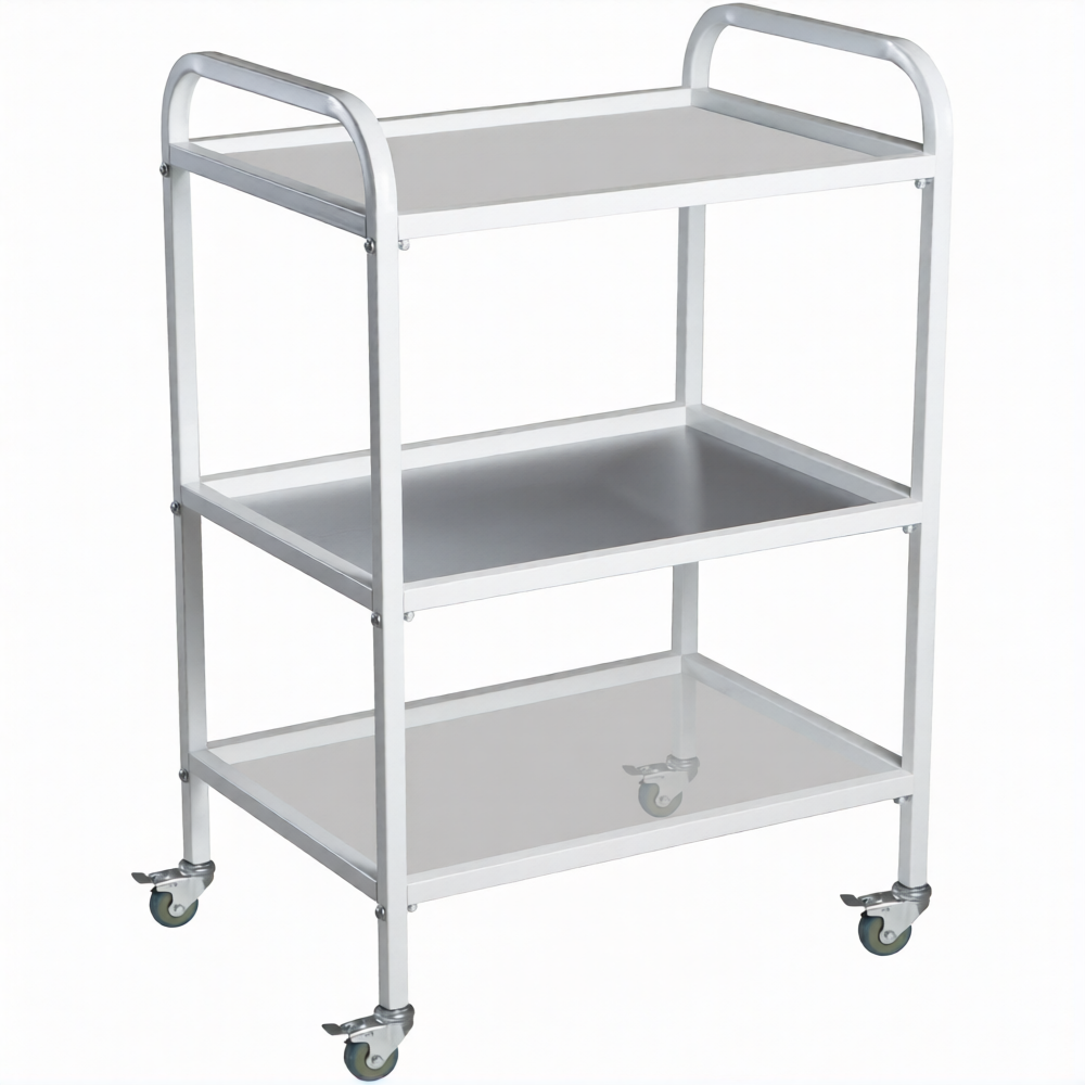 Столик медицинский инструментальный СМИ-03 (полки металл, колёса серая резина) предназначен для размещения инструмента, лекарственных препаратов и приборов.