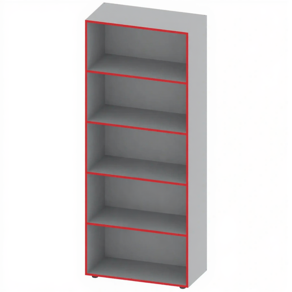 - Практичность и простота обслуживания — отсутствие сложных конструктивных элементов (дверей, ящиков) делает стеллаж легким в сборке, уборке и обслуживании.