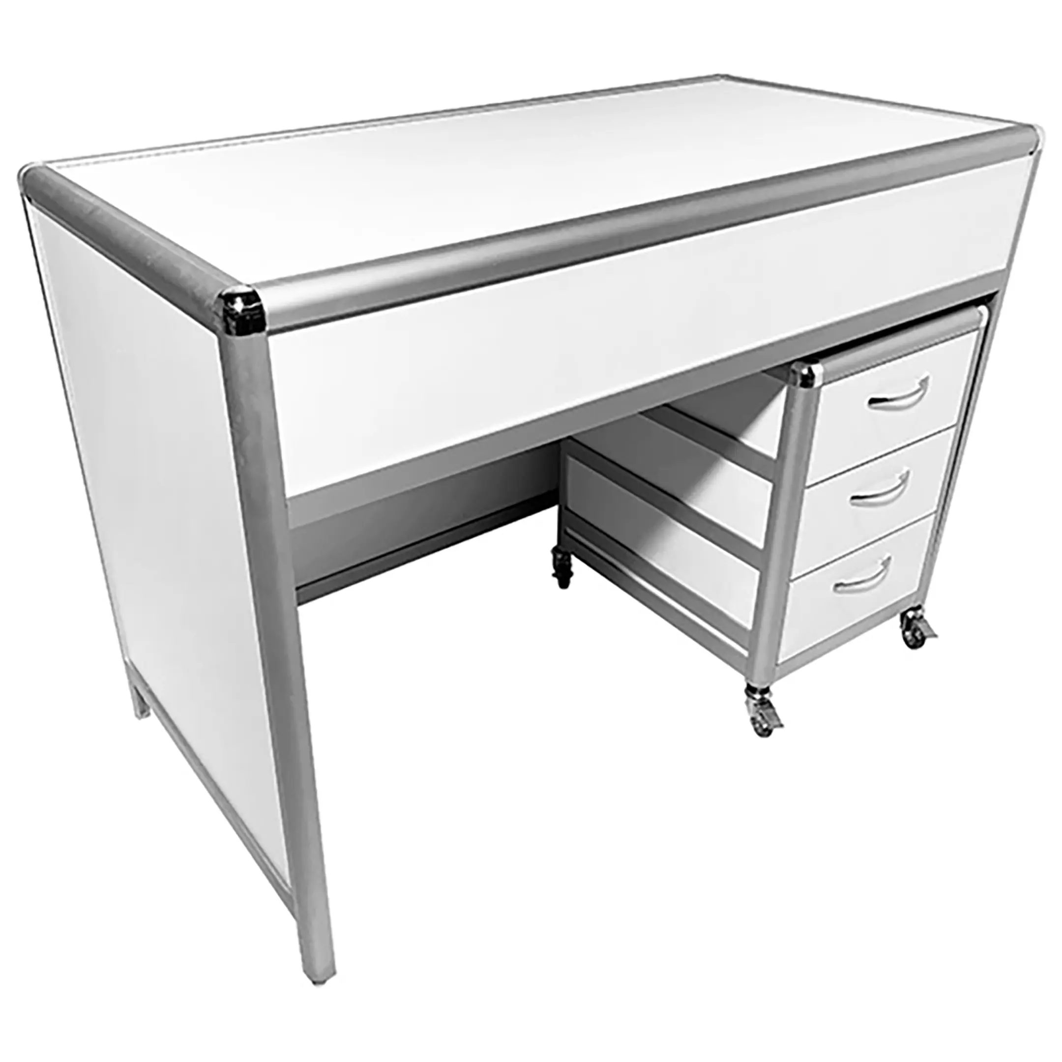 Стол лабораторный MED 10.014al (белый) — это удобное и практичное решение для создания эффективного и организованного рабочего места сотрудников в лабораториях и медицинских учреждениях. Модель оснащена подкатной тумбой на колесиках с тремя выдвижными ящиками. Каркас выполнен из алюминиевого профиля, столешница из ЛДСП толщиной 16 мм.