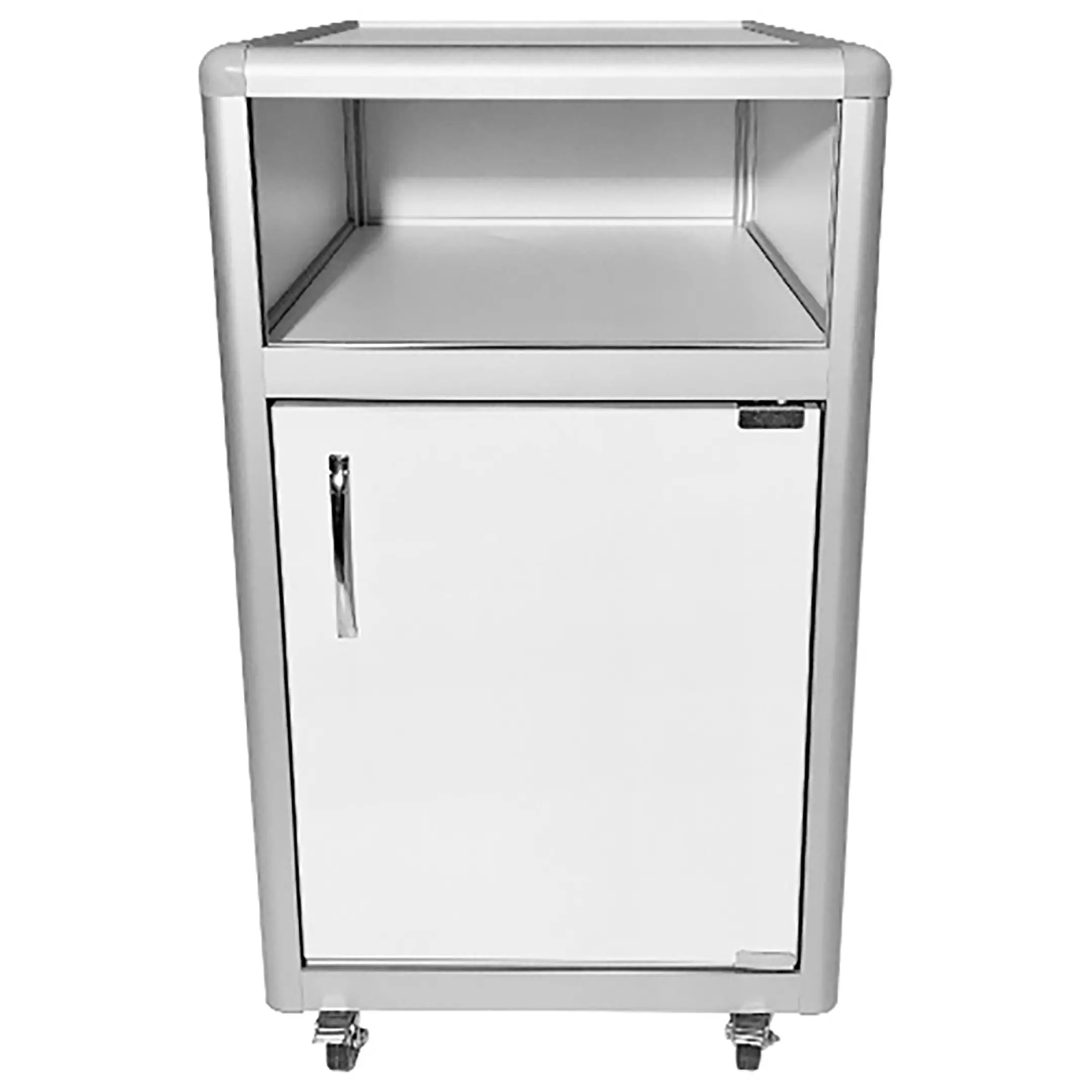 - Функциональное хранение — просторная открытая ниша и вместительное отделение с распашной дверкой и полкой внутри.