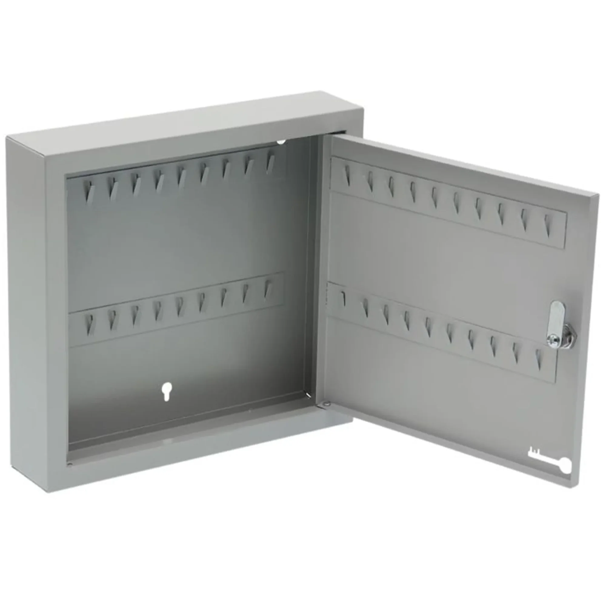 - Надежная базовая защита — прочный металлический корпус с замком обеспечивает защиту ключей от несанкционированного доступа, кражи или случайного повреждения. Это создает безопасное централизованное хранилище, основу для любой системы контроля.