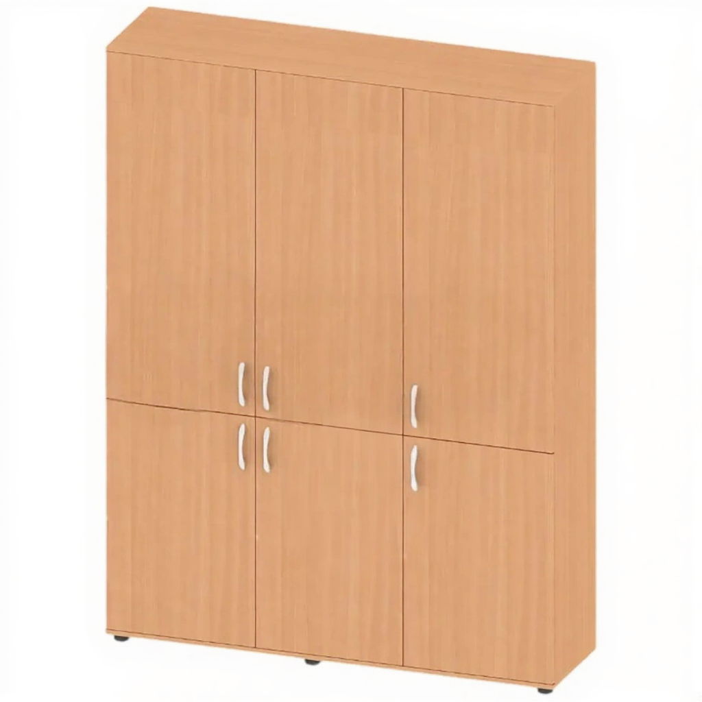 Шкаф 3 секции закрытый ШК-ДУ-20 — это вместительное и функциональное решение для хранения документов, книг, одежды и других материалов в образовательных, офисных и административных учреждениях. Модель имеет три закрытые секции с шестью распашными дверями и пятью полками (включая дно), что обеспечивает удобную организацию хранения. Изготовлена из качественной ЛДСП толщиной 16 мм.