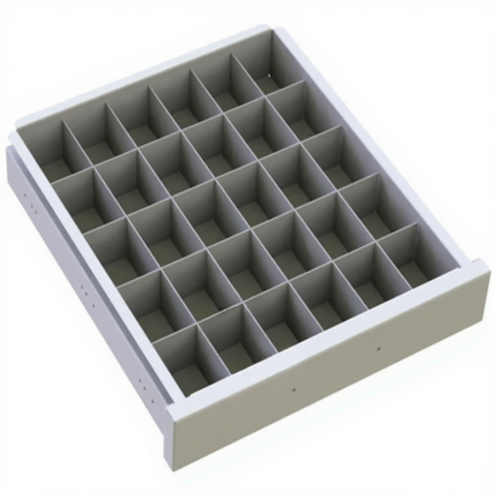 - Эргономика и эффективное использование пространства — вертикальная напольная конструкция позволяет компактно разместить большое количество ячеек для хранения. Работа с выдвижными ящиками на комфортной высоте снижает нагрузку на персонал и повышает производительность.