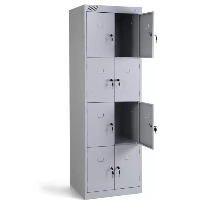 - Вместительная конструкция — две секции и восемь ячеек обеспечивают индивидуальное хранение для нескольких человек.