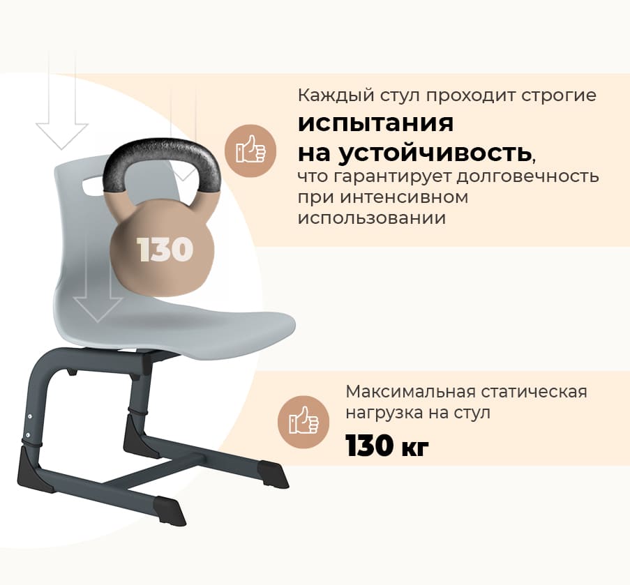 • Пластиковое сиденье и спинка — долговечные, лёгкие и легко очищаемые поверхности.