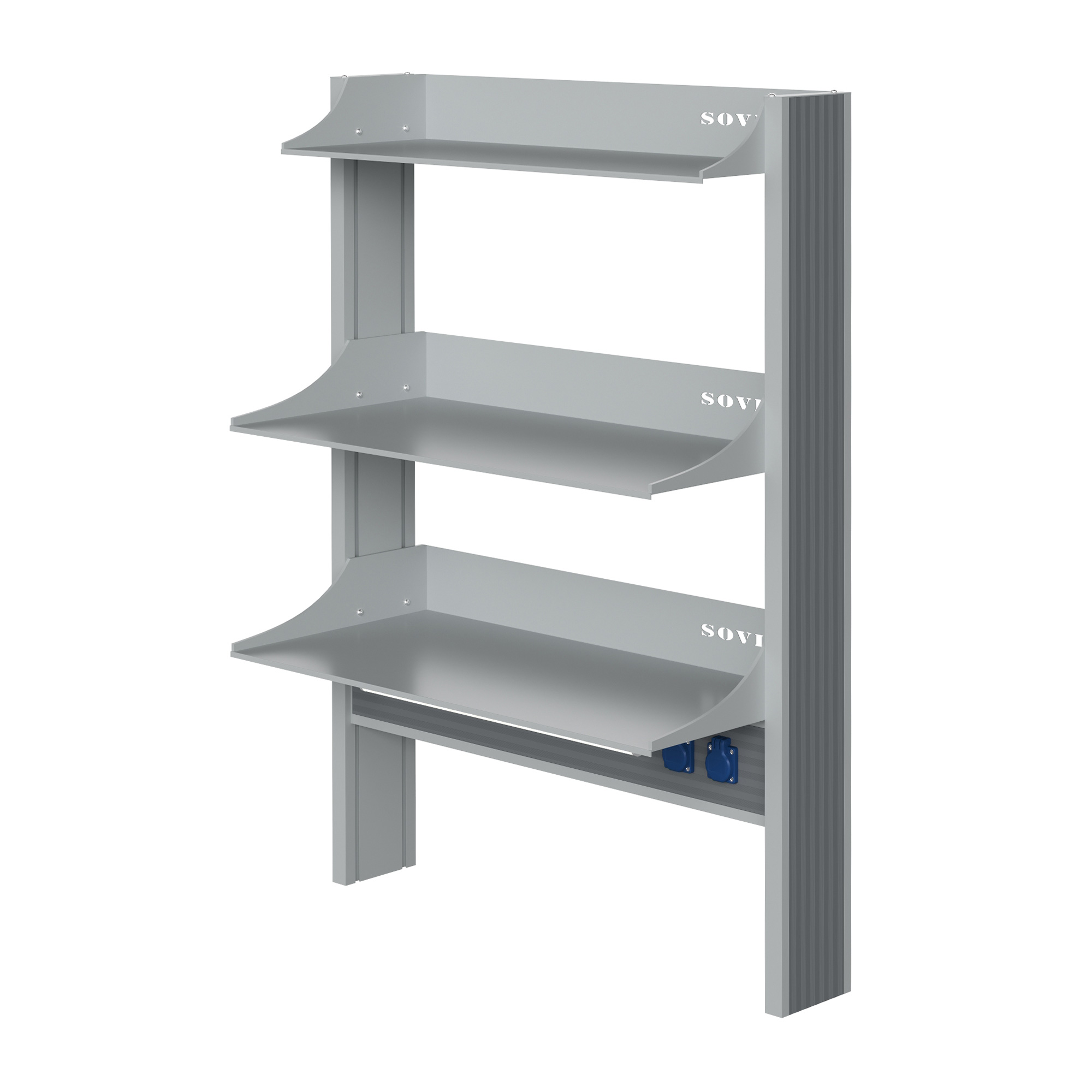 - Компактная и усиленная конструкция — три металлические полки с высокими бортами обеспечивают надежное размещение оборудования.