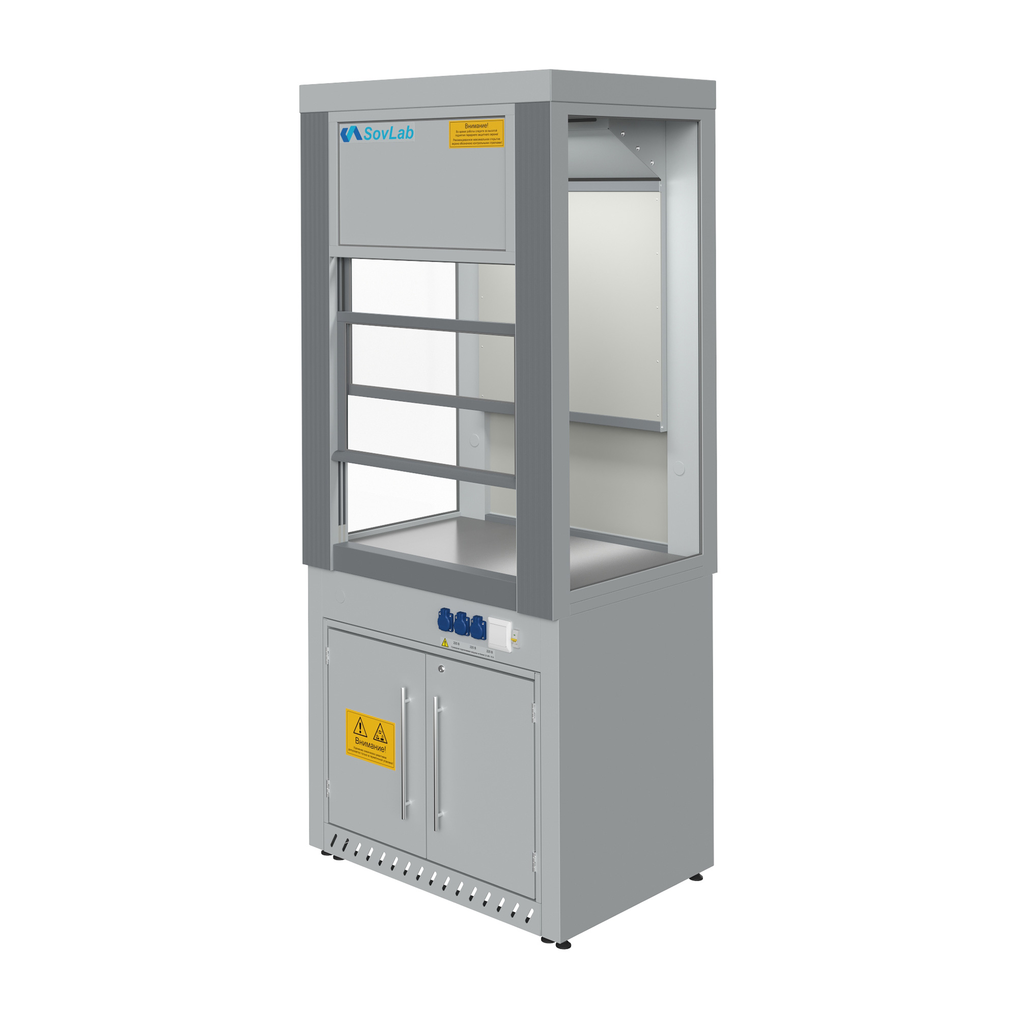 - Функциональный дизайн — шкаф подходит для установки различного лабораторного оборудования и приборов, облегчая организацию рабочего пространства.