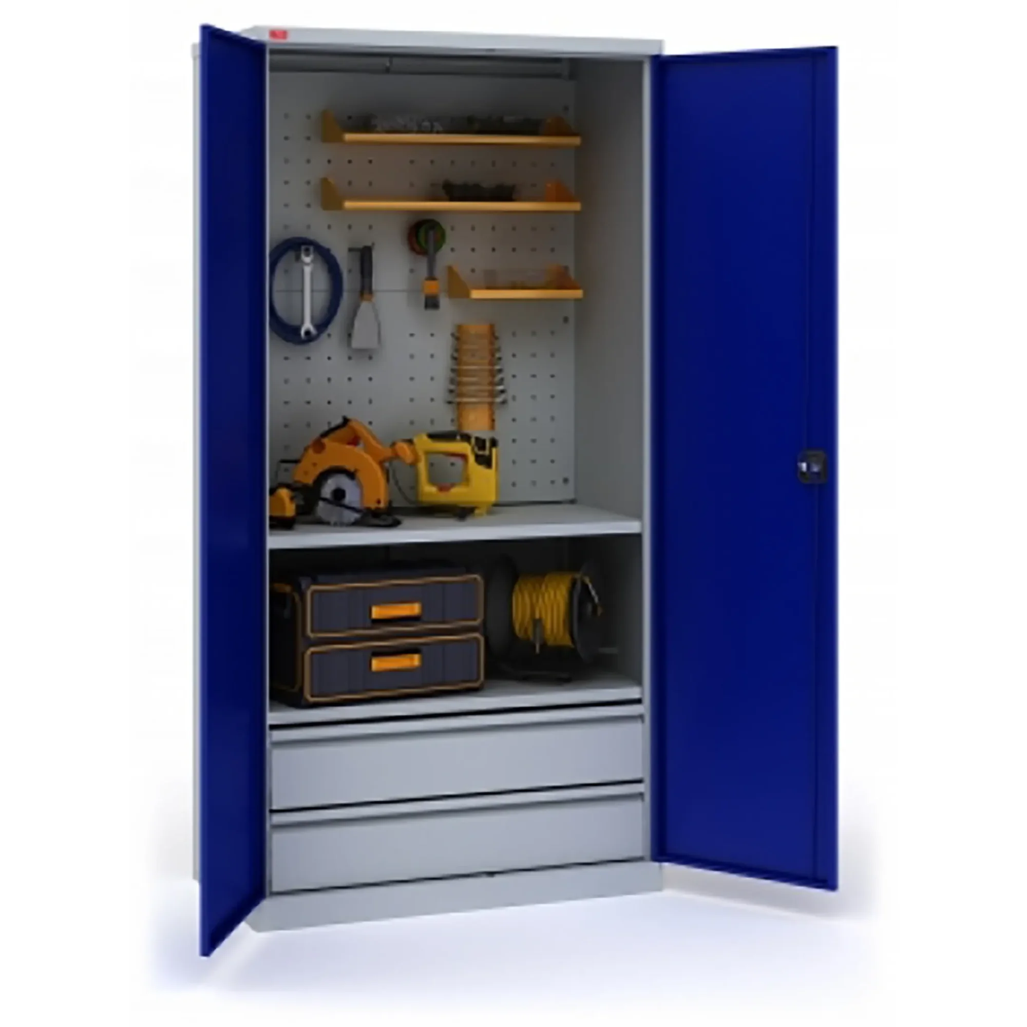 - Эффективная организация и базовое хранение — внутреннее пространство, как правило, организовано с помощью одной или нескольких полок, что позволяет удобно размещать средний и крупный инструмент, а также ящики с оснасткой или расходные материалы. Конструкция способствует поддержанию базового порядка.