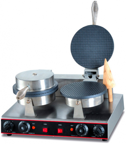 Вафельница Viatto HCB-2 — это профессиональное оборудование для приготовления тонких круглых вафель, используемых для формирования рожков для мороженого. Модель оснащена таймером и терморегулятором, а также имеет независимое управление рабочими поверхностями, что обеспечивает удобство и точность в работе.