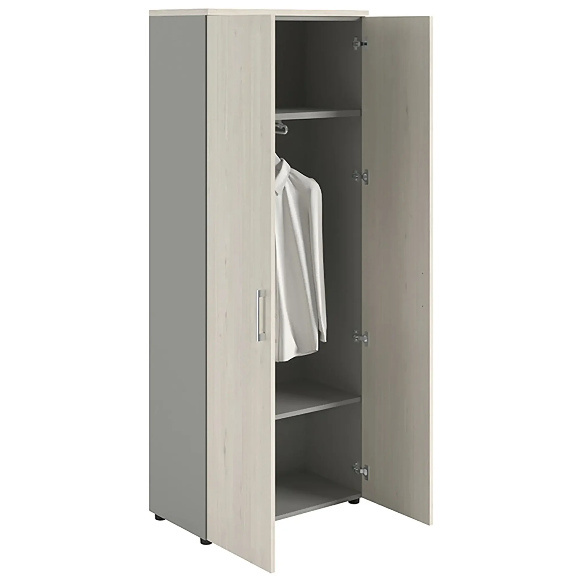 Шкаф NW 2080L гардеробный закрытый белое дерево/серый предназначен для хранения.