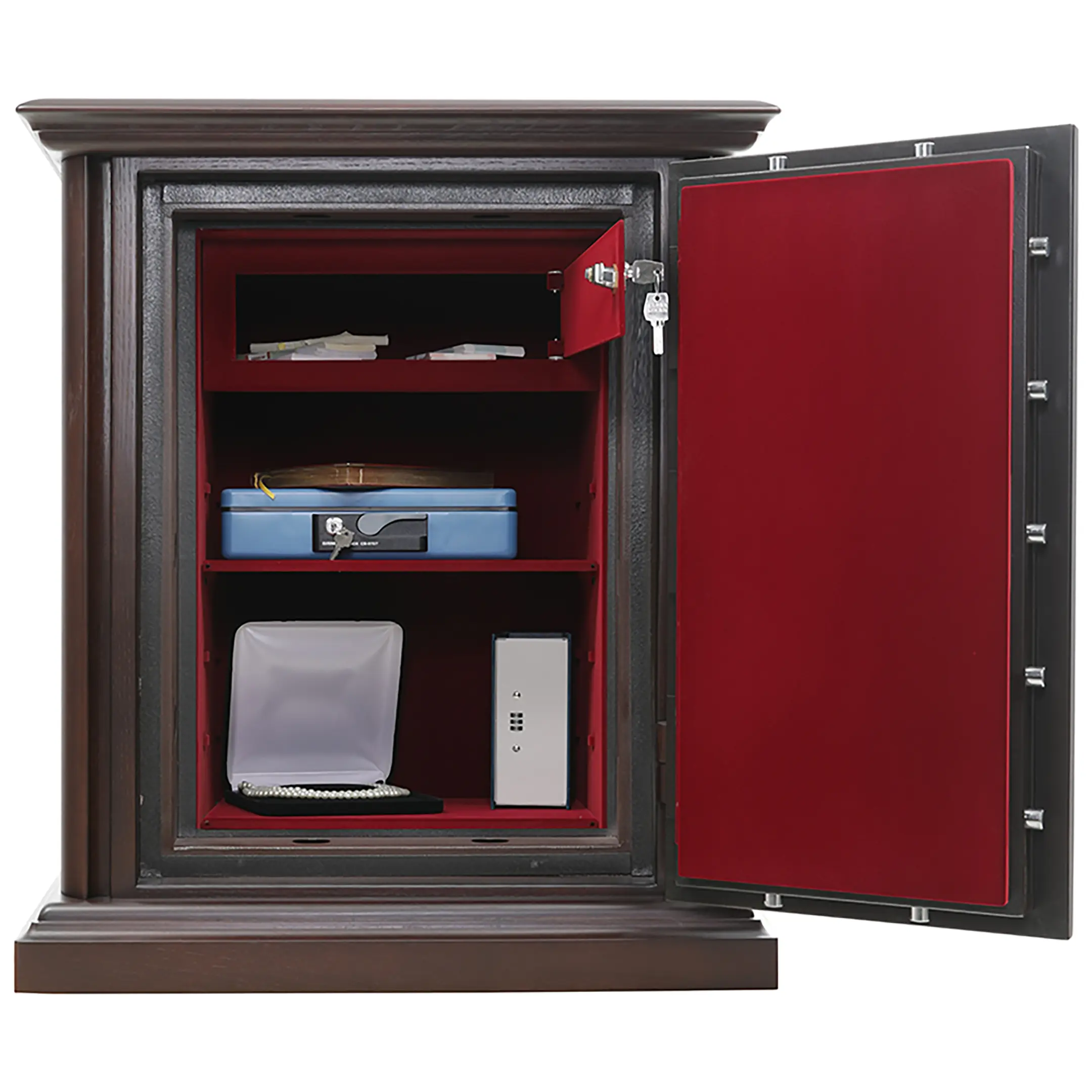 Предназначен для сохранности документов и ценностей при пожаре и взломе. Рекомендованная сумма хранения денег до 6.5 млн. руб. для физических лиц и до 2 млн. руб. для юридических лиц.