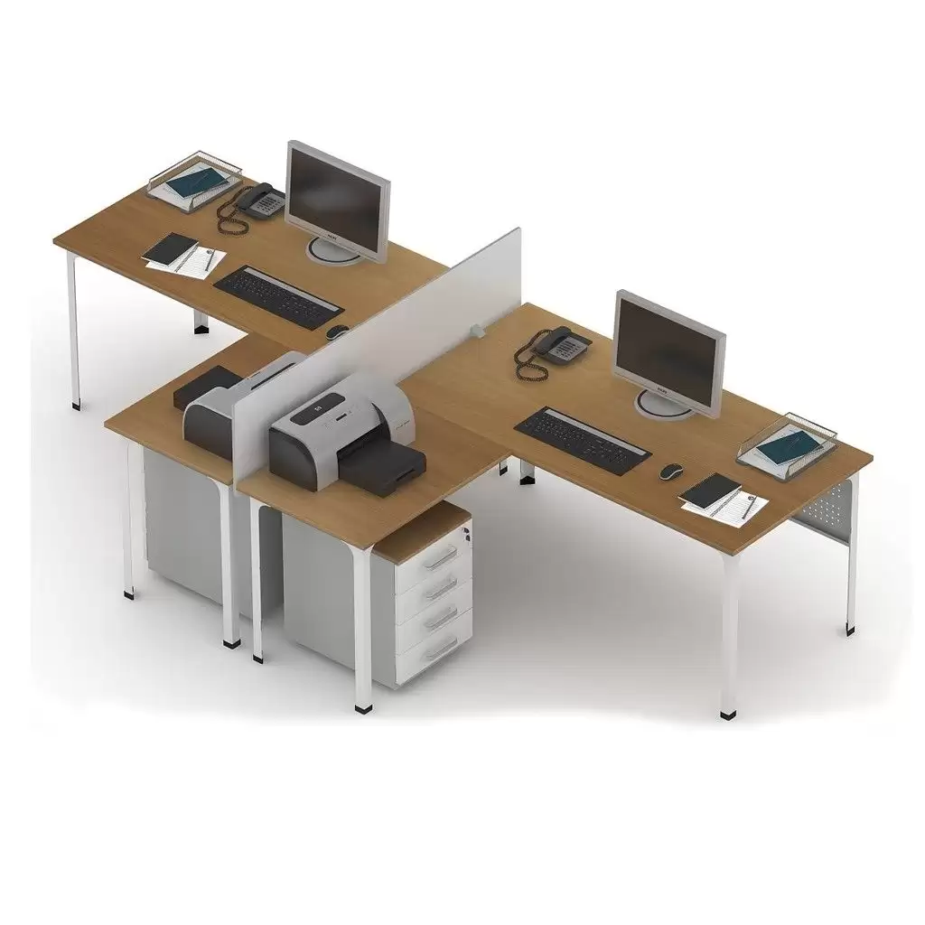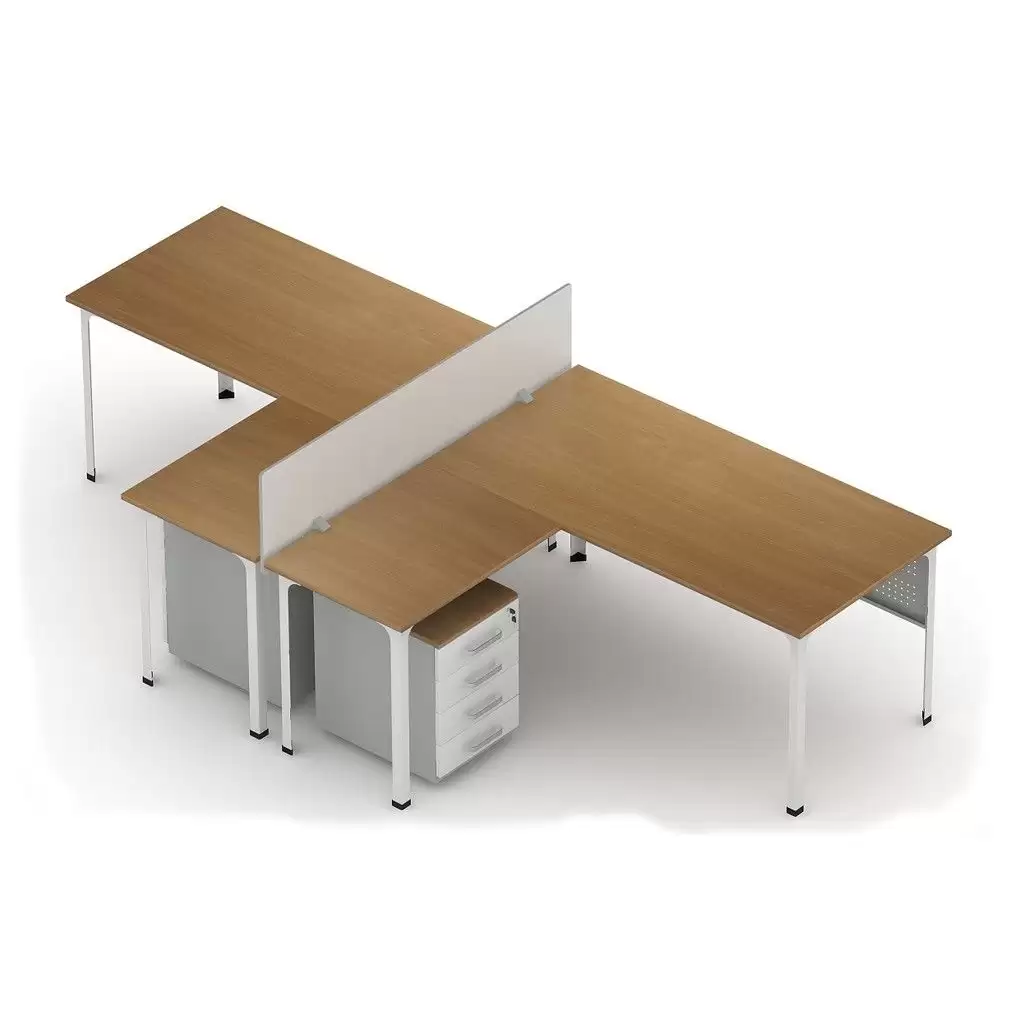 • формируется из 2 столов офисных, 2 столов-приставок и перегородки;