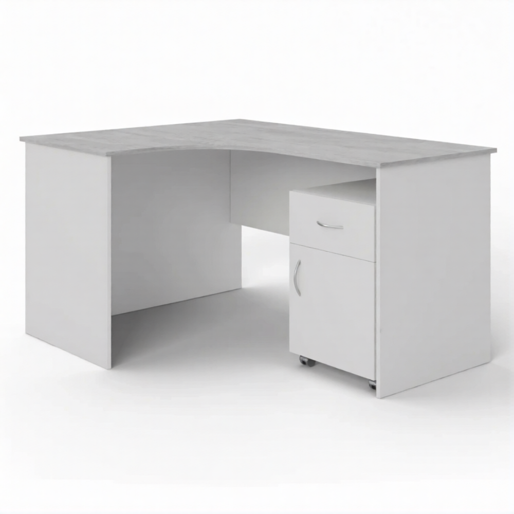 Стол рабочий угловой с тумбой подкатной СУ-1 левый (корпус ЛДСП белый, столеш. ЛДСП дуб канадский)