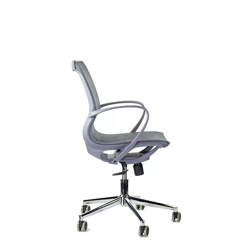 - Современный и нейтральный дизайн — серый пластиковый каркас (grey PL) придаёт креслу аккуратный внешний вид, подходящий для офисов и рабочих пространств различного стиля.