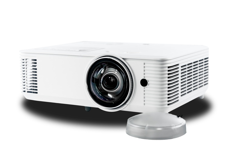 Короткофокусный. Технология DLP, Яркость 3500 ANSI, Разрешение XGA (1024x768), Контрастность 30 000:1. Проекционное отношение 0.62:1. Динамик 10 Вт. Источник света UHP лампа.