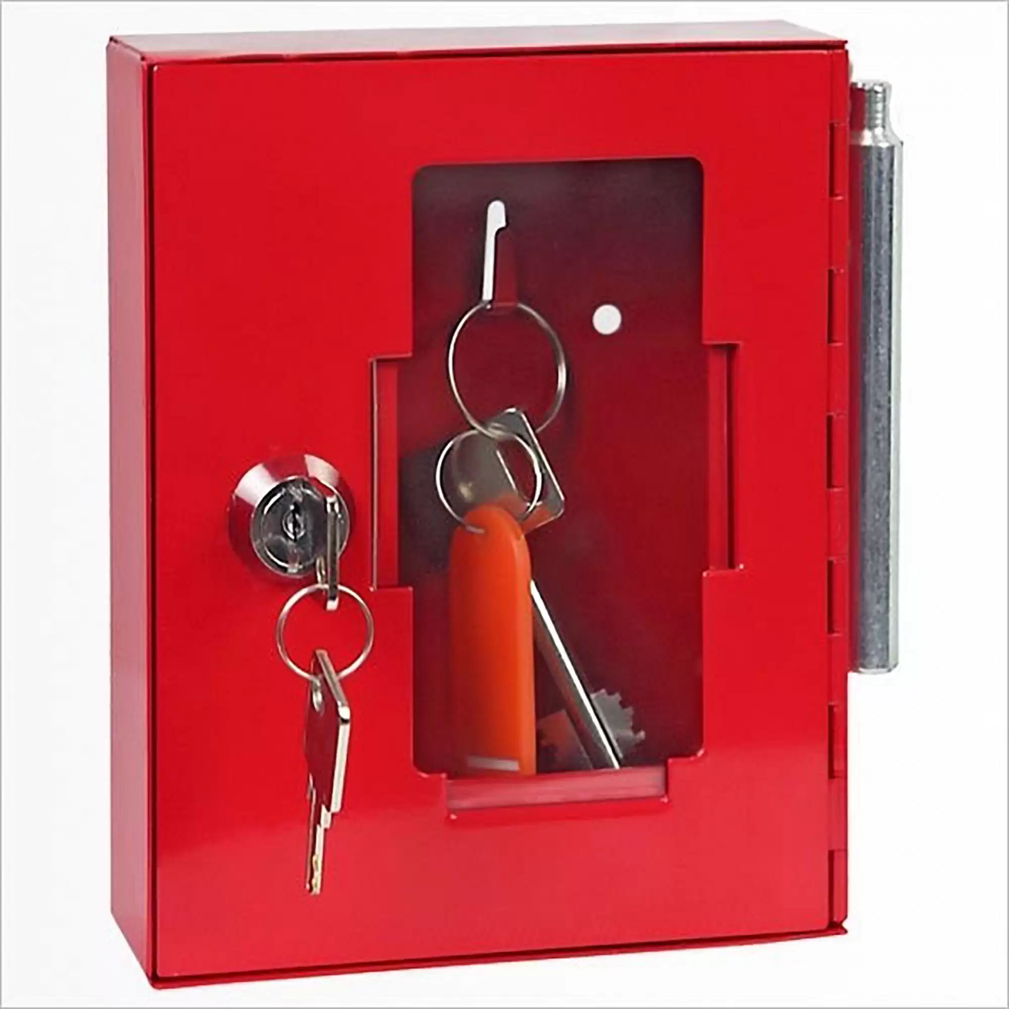 - Быстрый и гарантированный доступ в экстренных случаях — прочный прозрачный корпус позволяет визуально контролировать наличие ключа. Встроенный молоточек предназначен для моментального разбития дверцы в случае необходимости, обеспечивая доступ к ключу за считанные секунды без поиска инструментов.