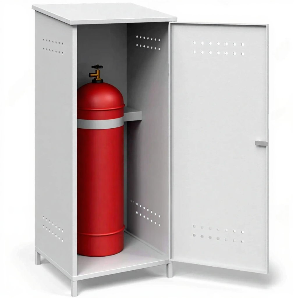 - Гарантированное обеспечение пожарной безопасности — шкаф служит надежным пожаробезопасным барьером, изолирующим пропановые баллоны от источников открытого огня, искр и теплового излучения. Обязательная система вентиляции (перфорационные отверстия в нижней и верхней зонах) обеспечивает постоянный воздухообмен и безопасный отвод тяжелого газа в случае утечки, предотвращая образование взрывоопасной концентрации.