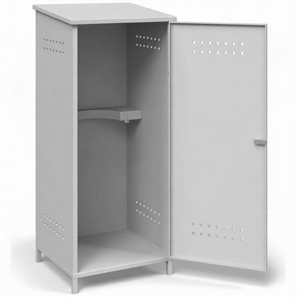 - Гарантированное обеспечение пожарной безопасности — шкаф служит надежным пожаробезопасным барьером, изолирующим пропановые баллоны от источников открытого огня, искр и теплового излучения. Обязательная система вентиляции (перфорационные отверстия в нижней и верхней зонах) обеспечивает постоянный воздухообмен и безопасный отвод тяжелого газа в случае утечки, предотвращая образование взрывоопасной концентрации.