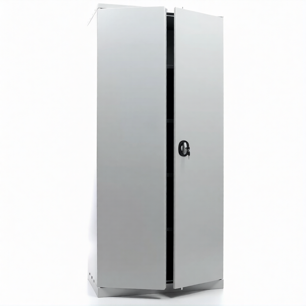 • имеет распашные двери, ключевой замок, регулируемые полки, фурнитуру;