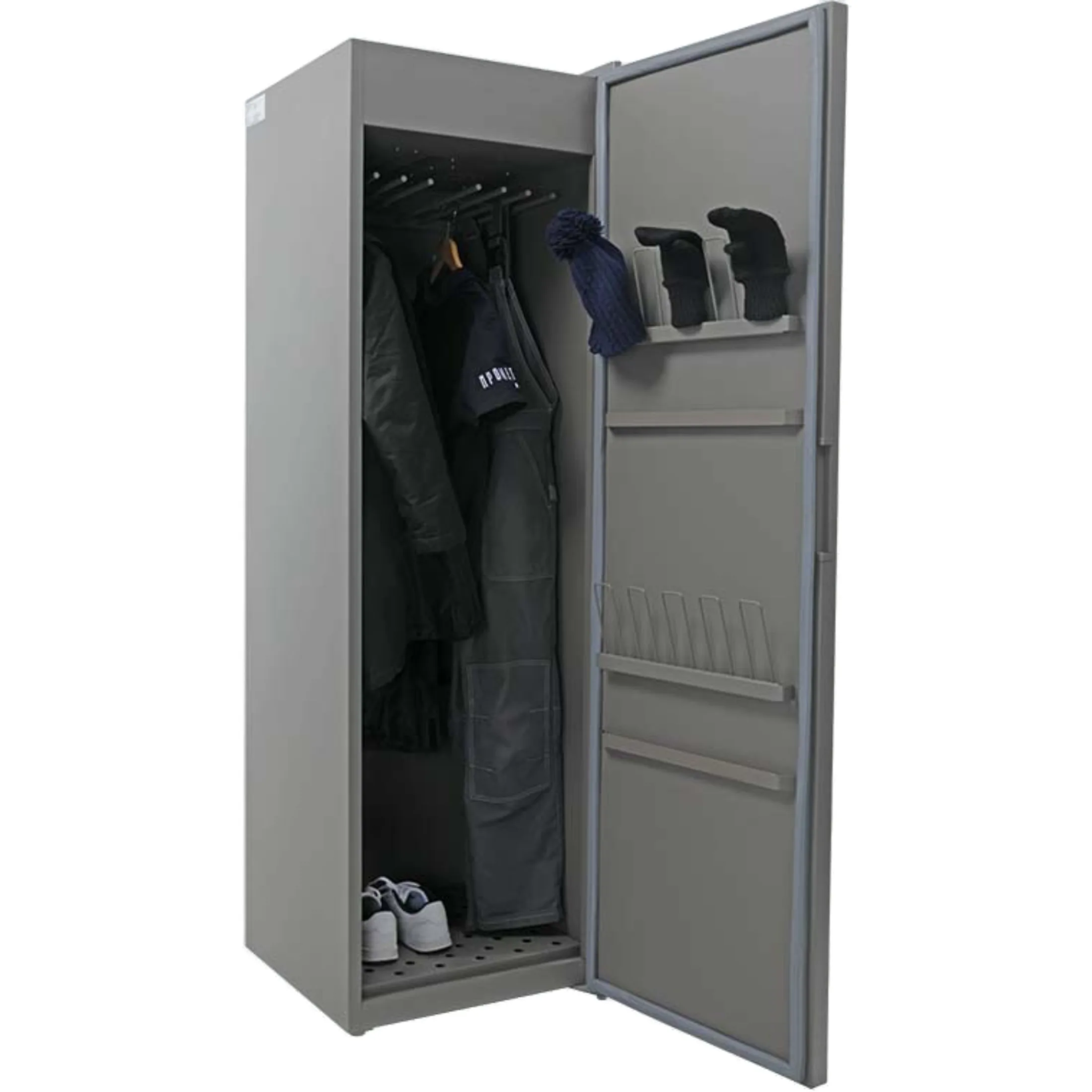 - Эффективная и быстрая сушка — шкаф обеспечивает равномерную циркуляцию теплого воздуха по всему внутреннему объему, что позволяет быстро и качественно просушивать одежду, обувь и инвентарь, сокращая время их готовности к повторному использованию.