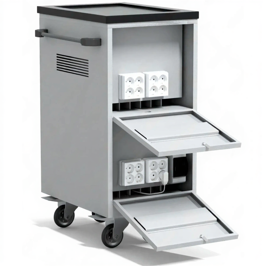 - Эффективная организация и экономия времени — централизованное управление зарядкой через электросхему избавляет от хаоса проводов и необходимости контролировать каждый ноутбук отдельно, гарантируя полную готовность всего парка к началу работы.